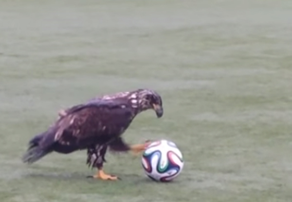 Eagle interrupts soccer game for her own tryout with the ball April 7, 2015 A soccer match in North Vancouver, British Columbia was interrupted by an eagle who landed on the field and decided to have an impromptu… Continue Reading