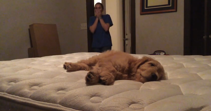 Woman meets her super cute new puppy April 26, 2015 Watch a woman meet her new puppy. Yup, that’s it. Thirty three seconds of a woman overcome with joy upon discovering a new puppy on a bed…. Continue Reading