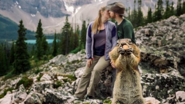 Nut-clutching squirrel photobombs engagement picture August 11, 2016 Squirrel photobombs are bound to happen anytime you combine a national park, happy couples and curious critters. Kelin Flanagan and Spencer Taubner, of Edmonton, Canada… Continue Reading
