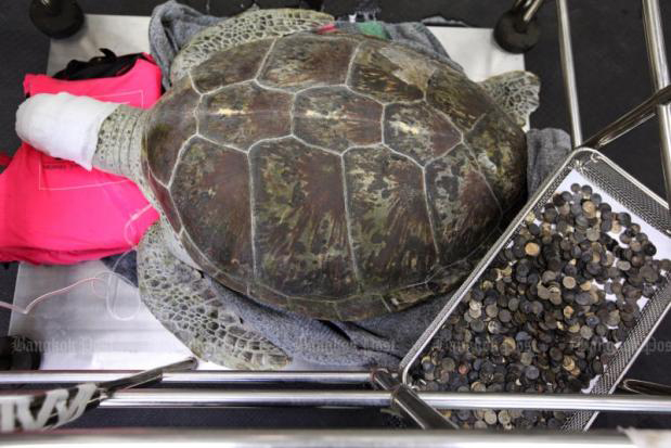 UPDATE: Turtle name Bank who had 915 coins removed from belly dies March 22, 2017 A sad update to report: the coin eating sea turtle from Thailand has died after failing to recover from surgery to remove all the… Continue Reading