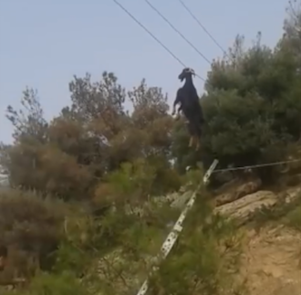 Goat on a wire rescued by lucky encounter with ladder wielding men March 30, 2016 How many people does it take to rescue a goat dangling from a power line? Six, it seems, and one to hold the camera…. Continue Reading