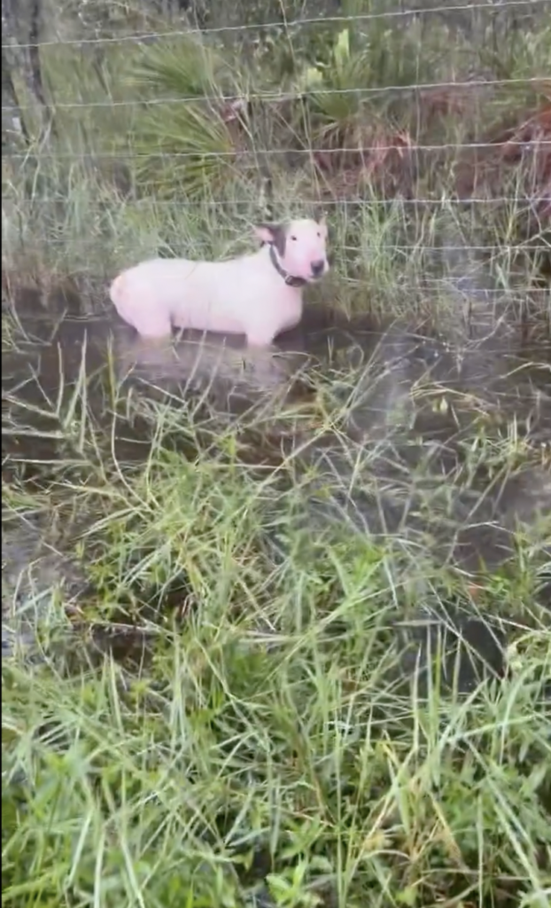 The dog was alone, tied to a fence post and standing in belly-deep in water when Florida Highway Patrol troopers rescued it from certain death as Hurricane Milton threatened to pummel the state Wednesday.