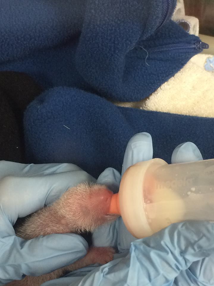Mei Xiang has not been a willing participant in the panda team’s efforts to switch the cubs since 2 p.m. yesterday afternoon. She has the larger cub in her possession. The panda team is caring for the smaller cub and will continue efforts to swap the cubs about every four hours. However, because the smaller cub has been away from Mei, the panda team is now managing it more intensely. The little cub’s behaviors are good. The team is concerned about its fluctuating weight since the cub is now more than 48 hours old. The most important thing for the panda team is to help the cub get enough fluids and nutrients. To accomplish this, they are bottle and tube feeding the cub. The cub has shown some signs of regurgitation which can lead to aspiration in such a tiny creature. To be prudent, the veterinarians are administering antibiotics to prevent possible infection. It’s very important to keep the cub hydrated so they are alternating an infant electrolyte solution with formula and administering fluids under the skin. The cub is urinating and defecating well. The veterinarians have not seen any sign of respiratory distress. Our observations of the larger cub from yesterday indicate it is doing well and we’re confident Mei Xiang is taking very good care of it. We remain in a high-risk period. We’ve received a lot of questions about the tiny size of the panda cubs. Bear cubs have the smallest infant-to-mother size ratio of any placental mammal at approx. 1 to 700. Mei Xiang currently weighs about 238 pounds. One of the cubs weighed 86 grams at birth, a 1 to 1,256 ratio of cub to mom. The larger cub weighed 138 grams at birth, a 1 to 783 ratio of cub to mom. Asia Trail keepers (who successfully hand-reared a sloth bear named Remi last year), additional veterinarian staff and a panda keeper from Zoo Atlanta have been well integrated into the panda team. The entire Zoo community appreciates the outpouring of well-wishes from around the world. #PandaStory #WeSaveSpecies #InstaScience A photo posted by Smithsonian’s National Zoo (@smithsonianzoo) on