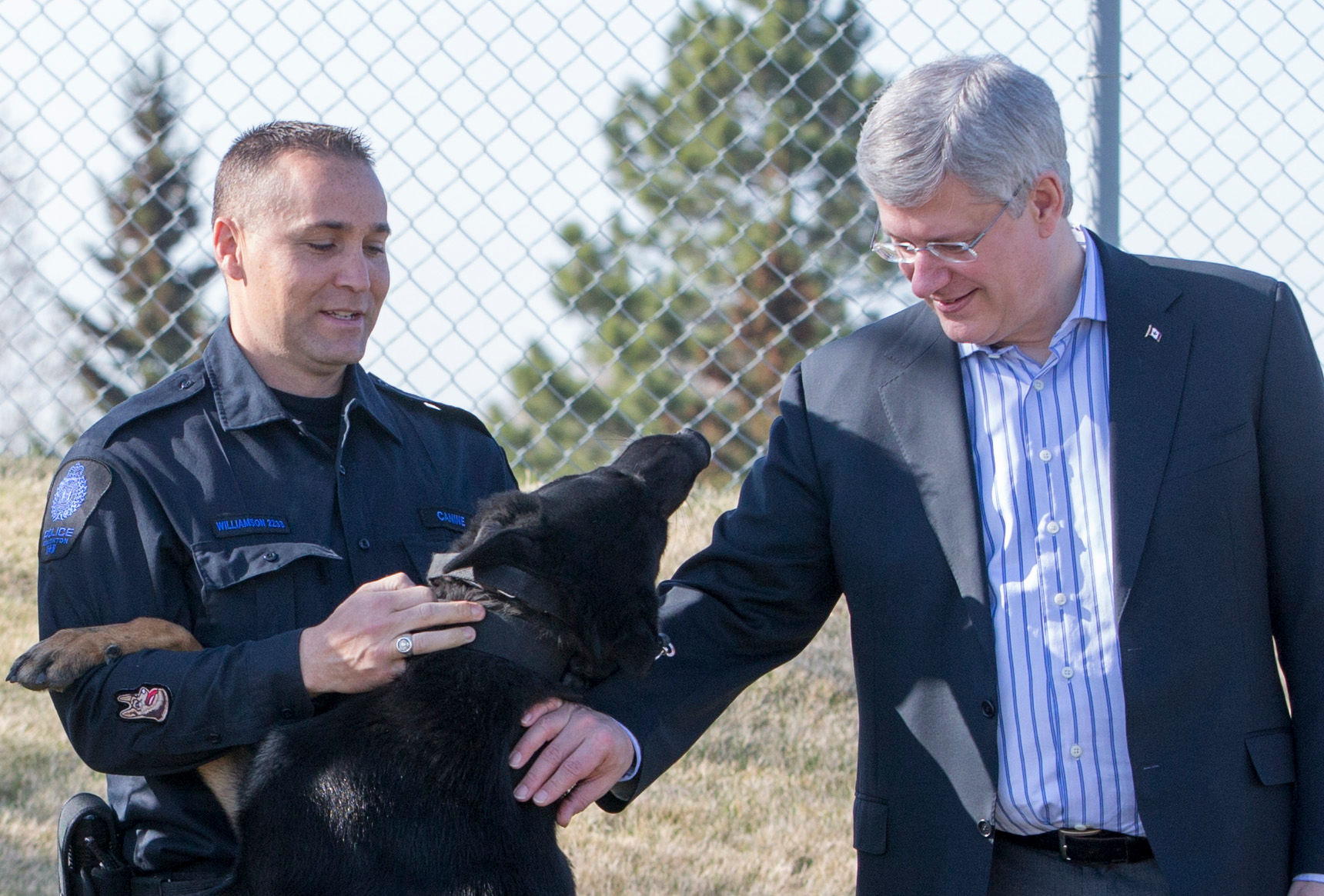 Prime Minister Stephen Harper unveiled the Justice for Animals in Service Act on Monday, also known as Quanto’s Law for the Edmonton police dog stabbed to death on the job last fall. The legislations aims to ensure that those who harm law enforcement, service and Canadian Armed Forces animals “face serious consequences.” Promised in the 2013 throne speech, the act amends the Criminal Code to impose a minimum six-month jail sentence for anyone who kills a police dog. The maximum sentence would be five years.