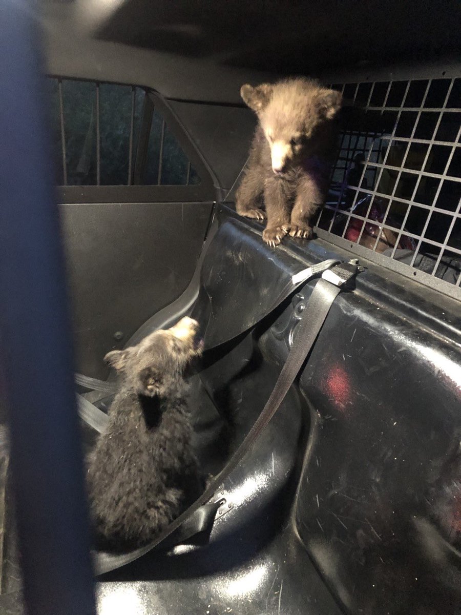 Orphaned bear cubs are placed in the back of a police car in Arizona. Department of Public Safety/Twitter