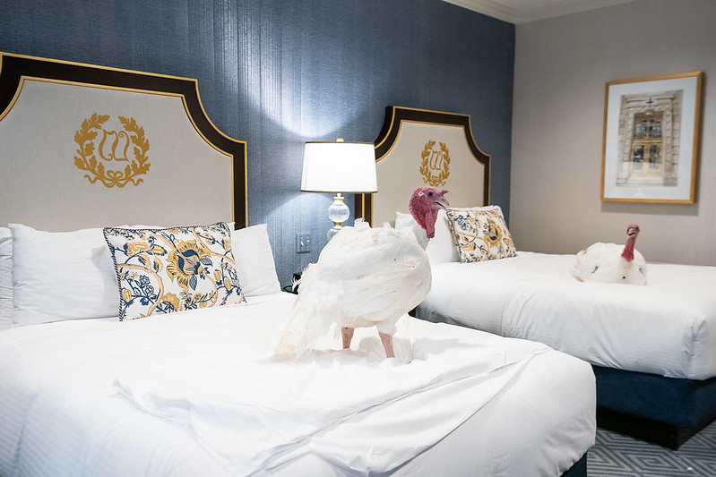 The North Carolina raised turkeys, named Bread and Butter, were first treated to some posh digs at the Willard Hotel.