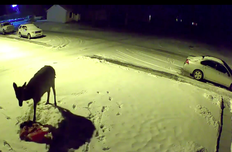 One very angry elk was responsible for biting, flinging and stomping on her inflatable Christmas emoji poop decoration in Alberta’s Jasper National Park.