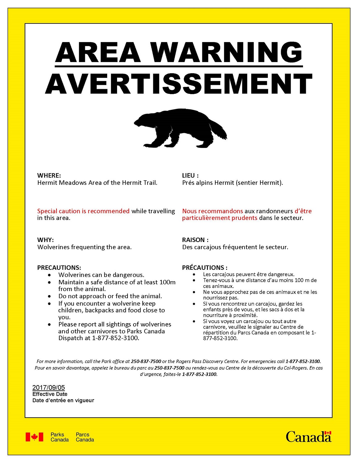 “A wolverine warning is in effect for the Hermit Campground area in Glacier National Park,” Parks Canada posted on Facebook. “Two of these normally elusive animals have been quite active around the campsite. As always, please maintain a safe distance of at least 100 metres, be vigilant about proper food storage, and follow the leave no trace principles.”