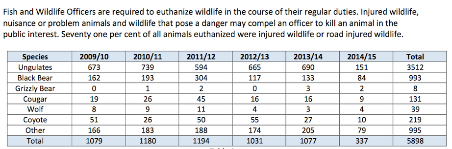 With its cougar report, the Alberta government issued this tally of wildlife killed by officials because the critters posed a danger to the public.