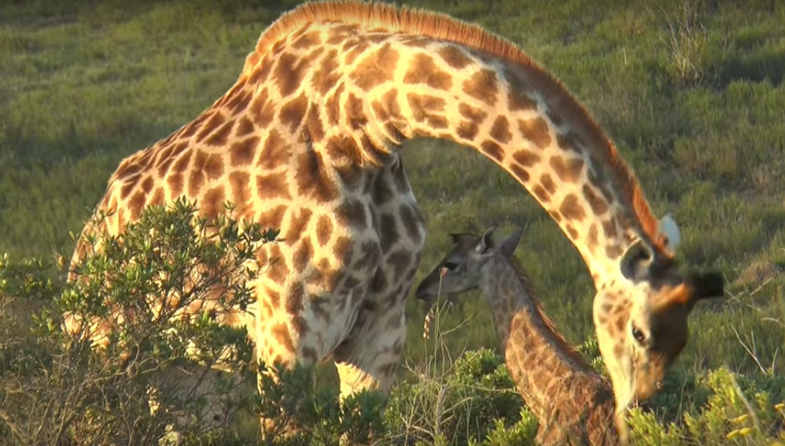 Among the critters in the video, a serene baby giraffe, boisterous wildebeest/gnu and a very hyper white rhino baby running around in circles.