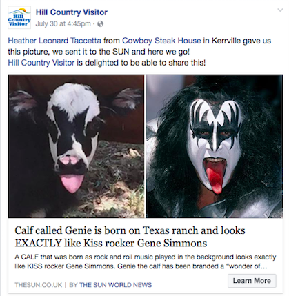 Tourist and travel purveyor, the Hill Country Visitor, is largely responsible for the local celebrity going viral.