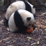 At first the pandas just played with the pumpkin that had been left out for them. Some then tried to nibble on them a bit.