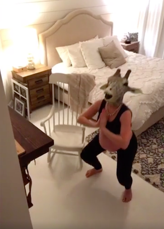 The pregnant photographer, who lives in South Carolina, donned a giraffe head and filmed herself pacing and swaying around her bedroom. The livestream was filmed by her husband as they are expecting their fourth child.