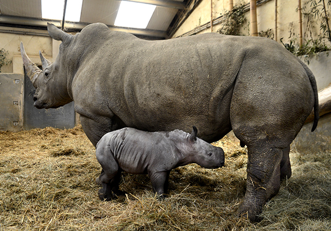 Queenie is the ninth white rhino calf to be born at the Burford collection, and she is the fifth calf to be born to mother Nancy, and father, Monty, at the zoo.