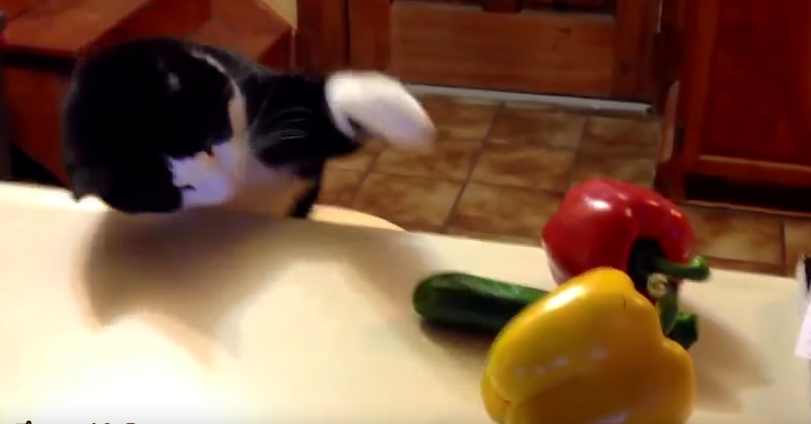 Screen Shot 2015-11-18 at 4.32.31 PMThe cucumber doesn’t actually do anything to the cat. But viewers commenting on Youtube speculate it could be that the cucumber reminds cats of snakes.