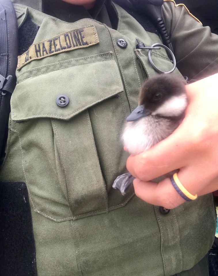 Instead, the trio of ducklings were scooped up and spent the night in the officer’s bathtub.
