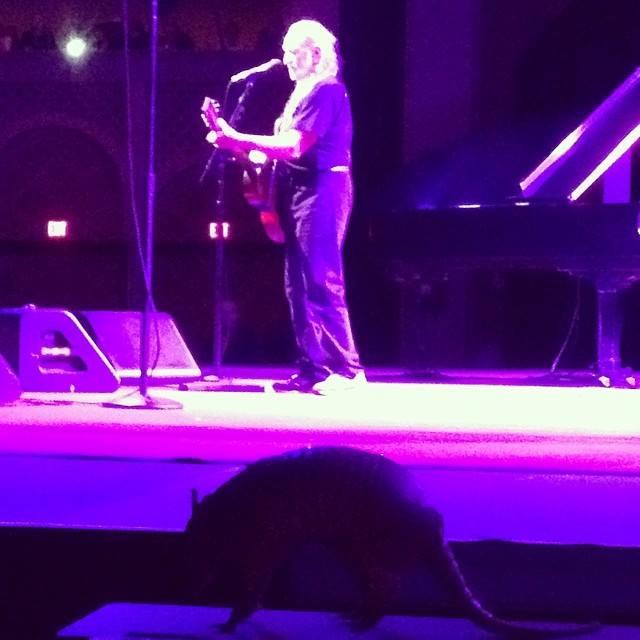 Ol Dillo has been the “beloved unofficial band mascot” to Willie Nelson for more than three years. The armadillo, which is stuffed, not live, actually belongs to the country crooner’s sound engineer Aaron Foye. Ol Dillo can usually be found perched on his console at stage left. That’s of course unless he’s been pinched by some irrationally exuberant fans. And lately, Ol Dillo has spent a lot of time on the road – the victim of kidnappings.