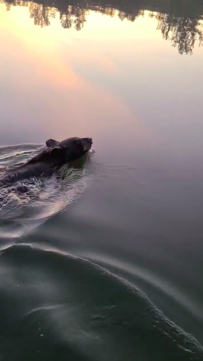 The bear literally swam off into the sunset and hopped onto shore.