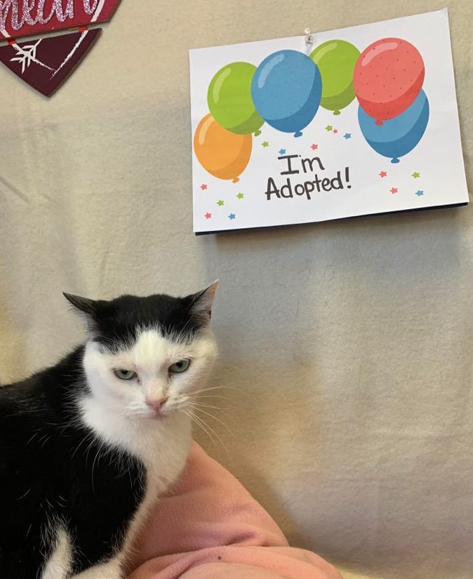 “Perdita chose her adopters after a successful meet and greet that included minimal growling and very little slapping (on her part…her new cat parents are lovely and don’t growl or slap at all),” the shelter announced Tuesday.