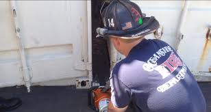 The good folks at the Carlsbad Fire Department had to use the “jaws of life” to widen the space in between the storage units by about six inches.